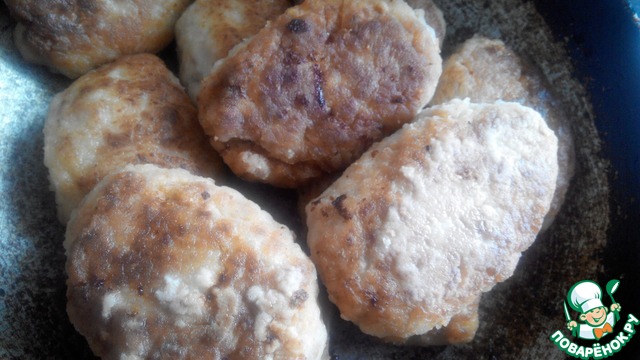 Формовать котлетки и обвалять их в кукурузной муке. (У меня получилось 17 котлет. Часть отправила в морозильную камеру для неожиданных гостей). Остальные котлеты обжарить на растительном масле с обеих сторон до зарумянивания. После этого огонек убавить, налить немного водички и сразу же закрыть крышкой. Готовить на слабом огне до выпаривания воды, минутки три с обеих сторон.