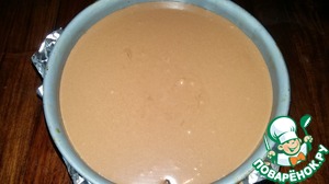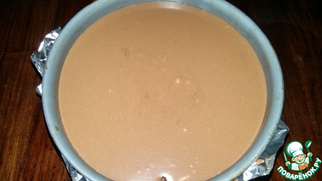 Вылить кремово-шоколадную смесь в форму и поставить в заранее разогретую до 200 гр. духовку на 10 минут, затем снизить температуру до 105 гр. и выпекать торт еще в течение 1 часа.