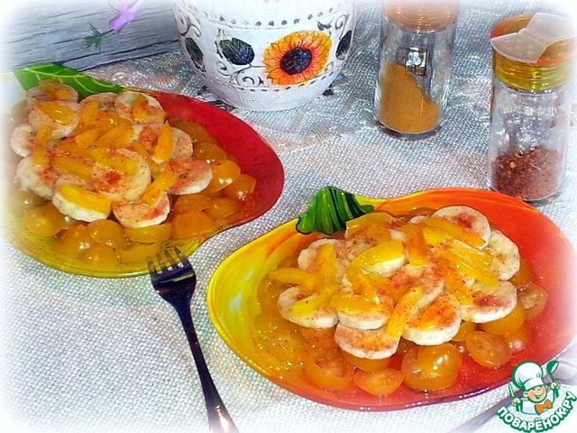 Салат из бананов и помидор. Возможно покажется салат немного странным, но это не так. Салат вкусный! Помидоры и бананы дополняют друг друга своими вкусовыми качествами.