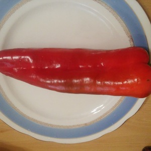 3. Подготовить красный болгарский перец. Разрезать его вдоль, очистить от семечек.
