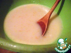 Смешать кокосовое молоко, растительное масло, мандариновый сок с цедрой и сахарный песок -