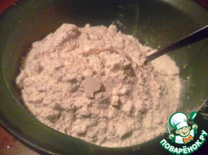 Смешать мучную и влажную смесь. Перемешать до однородности.