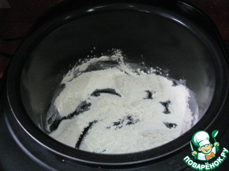 В чашу мультиварки засыпать муку. Закрыть крышку. установить программу "Жарка". Установить время приготовления 30 минут. Готовить до окончания программы, периодически помешивая.