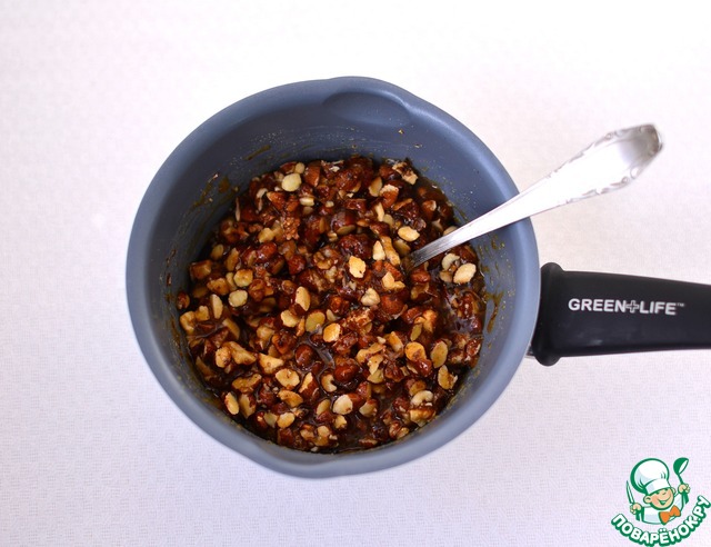 Орехи обжарить на сухой сковороде в течении 5 минут.