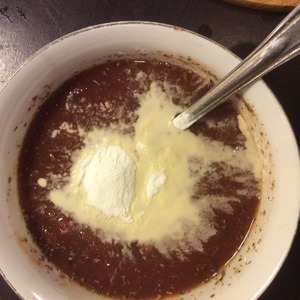 Соус (у меня был домашний), дольки томатов, молотый черный перец, сухой базилик, крахмал и воду смешиваем. Чеснок пропускаем через пресс и добавляем к соусу. Солим по вкусу.