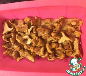 Крупные грибочки режем, мелкие оставляем целыми. На раскаленную сковороду наливаем 1 ст. ложку растительного масла Олейна и обжариваем грибы около 5 минут.
