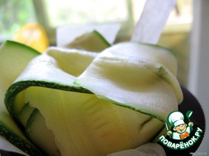 На слайсере нарезать цукини поперек.