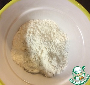В миску всыпать 1 ст. ложку крахмала и 1 ст. ложку пшеничной муки.