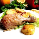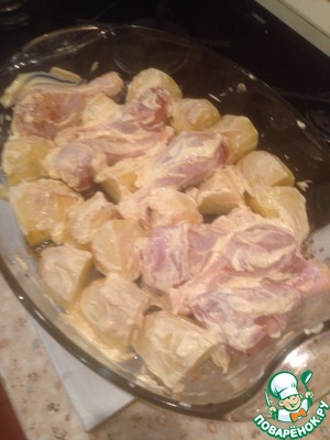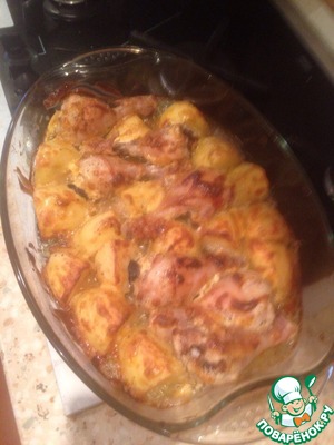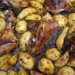 К картошке добавляла батату. Очень вкусно все получилось. Когда мариновать курочку добавила не много уксуса к приправам, так вообще во рту таяла.