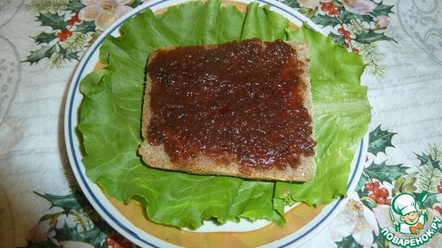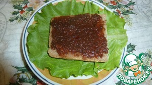 Составляем сэндвич:1слой-хлеб, сверху мажу ткемали (горчицу, кетчуп) -