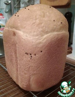 А дальше все просто. Заложить все ингредиенты в ХП согласно инструкции и выставить необходимый режим. У меня основной обычный хлеб, размер L. Время выпечки 4 часа 5 минут. За 5 минут до выпечки смазать верхушку хлеба простой водой и посыпать кунжутом.