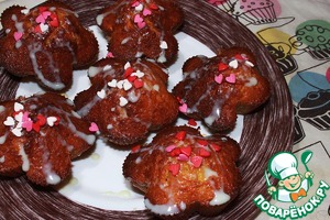 Достаем наши кексы из духовки и даем им немного остыть (5-10 минут). Поливаем их сгущенкой, украшаем кондитерской посыпкой и наслаждаемся вкусом. Приятного аппетита!