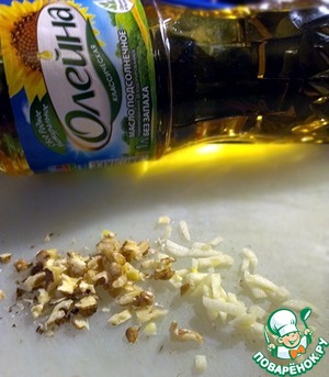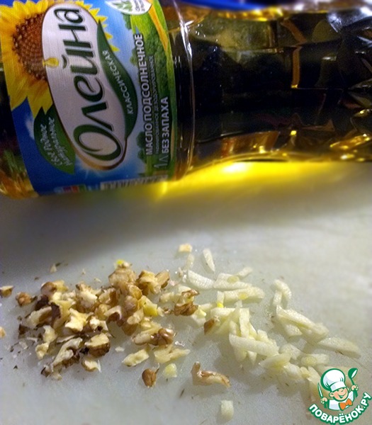 Орехи и чеснок мелко нарезать.