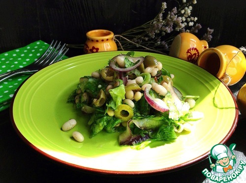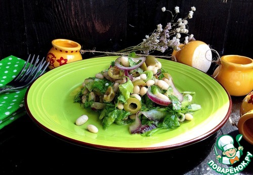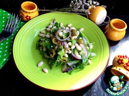 Простой, вкусный и пикантный салат с белой фасолью и овощами. Приятно разнообразит повседневный стол и оставит самые положительные эмоции. Угощайтесь!