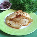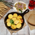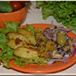 Это простое, но очень вкусное и ароматное блюдо. Золотистая, румяная картошка, запеченная в духовке в роскошных специях, в окружении наивкуснейшего маринада-закуски. Уверена, что эта картошка станет приятным гостем за вашем столом. Угощайтесь!