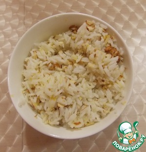 В рис добавить куркуму и рубленый миндаль, посолить.