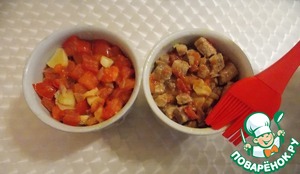 Плотно накрыть формочки тестом. Смазать тесто взбитым яйцом.