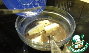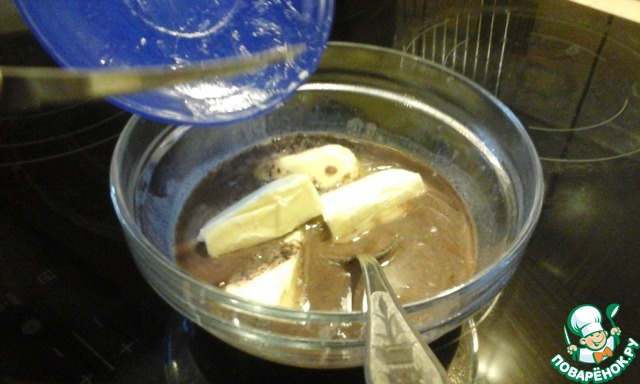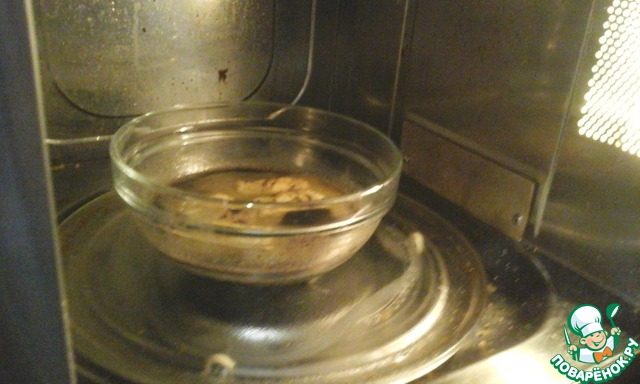 И опять ставим в микроволновку, только уже с маслом и шоколадом где-то на полтора минуты.