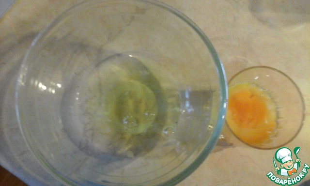 Пока наша смесь греется, мы отделяем белки от желтков из наших 3х яиц.