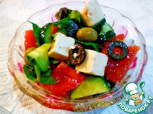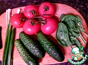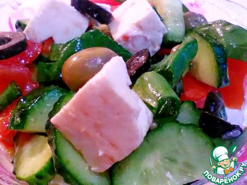 Очень яркий и очень вкусный салатик из свежих овощей и маринованного сыра. Мариновал сыр по рецепту Любы ( pupsik27 ). А так как я не умею готовить в маленьких объёмах, сыра приготовил побольше. Вот и решил сделать такой салатик. Начнем...