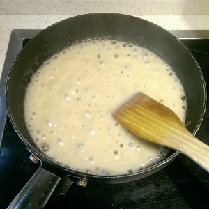 Для соуса в сковороду налейте немного масла и добавьте 1 ст. л. муки, прожарьте пару минут. Добавьте к муке чуть больше половины стакана воды и постоянно помешивая проварите еще пару минут, посолите по вкусу.