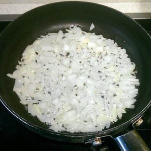Репчатый лук мелко нарезать и обжарить на растительном масле до золотистого цвета.