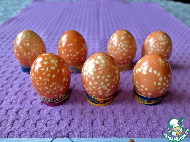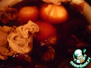 Сварить яйца в красящем отваре.