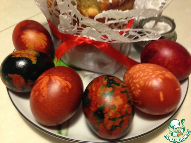 Рецепт «Пасхальные яйца с рисовым рисунком»: