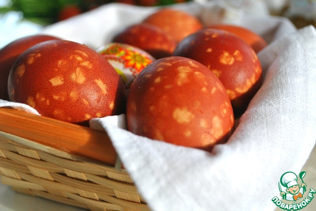 В основном, конечно, луковую шелуху. Для этого наполнить кастрюлю наполовину холодной водой и добавить луковую шелуху (чем больше шелухи, тем лучше цвет. Но учтите, что она должна плавать в воде). Проварить шелуху 10 минут и дать отвару настояться и остыть до комнатной температуры.
