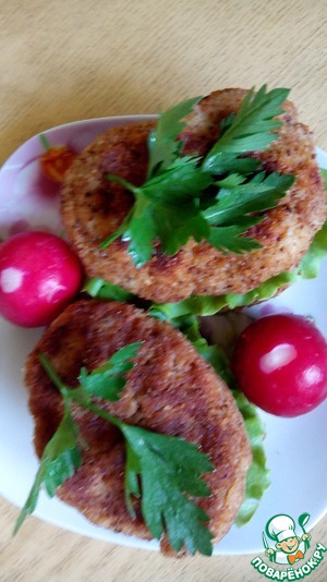 • Формируем котлеты, панируем в сухарях и жарим на рафинированном масле ТМ "Олейна".
