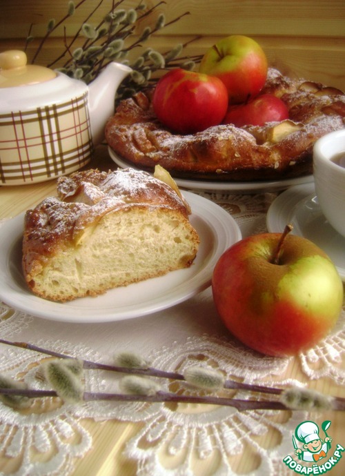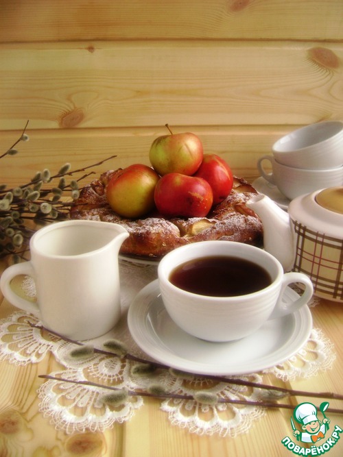 Очень люблю выпечку с добавлением овсяной муки, всегда так ароматно. А если еще и с моими любимыми яблоками- так и вовсе чудесно! Сегодня испекла вот такой нарядный венок, хочу поздравить всех в Вербным воскресеньем! А особенно хочу угостить кусочком свежего ароматного пирога с чашкой горячего чая Викушу –victoria ms. Пусть в бесконечной карусели дел и забот найдется минуточка для себя – чуть присесть, выпить чаю и помечтать о приятном!