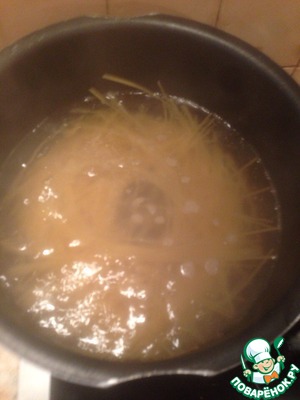 Когда вода закипает, подсаливаем и кладем нашу пасту, варим до готовности