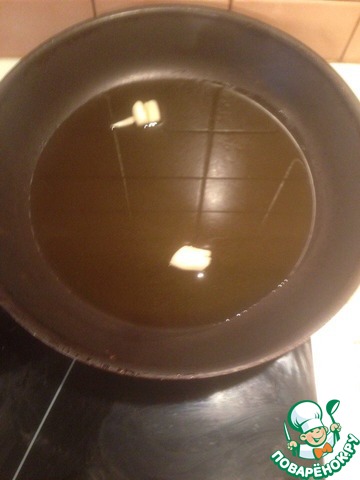 Пока наша паста варится, берем 2 зубчика чеснока, надавливаем на них и обжариваем на оливковом масле, после чего вынимаем чеснок и выкидываем, он нужен нам для вкуса