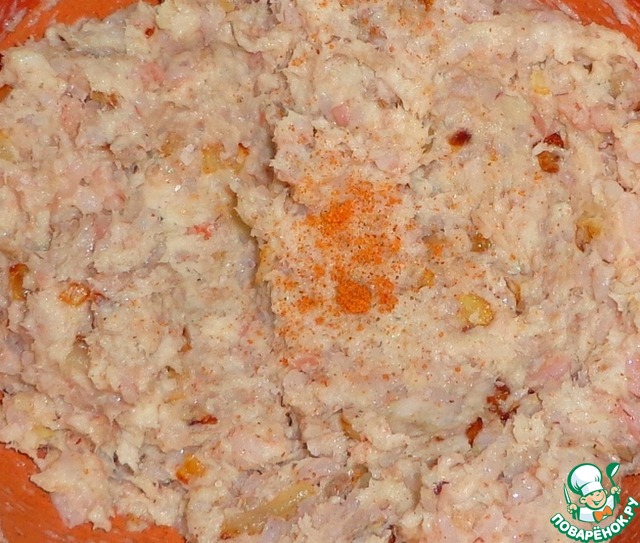 Рыбное филе измельчить.