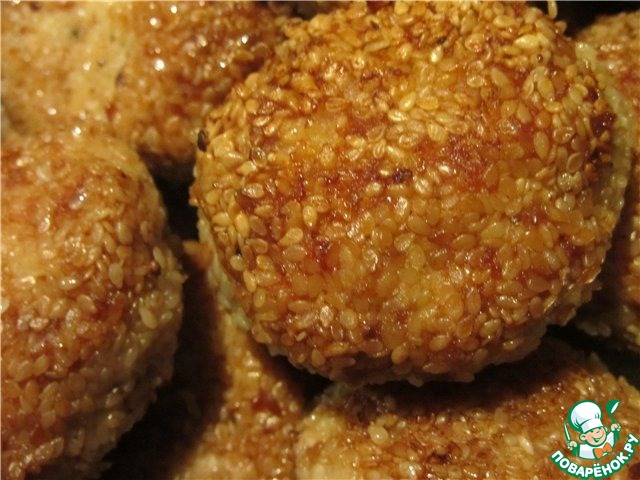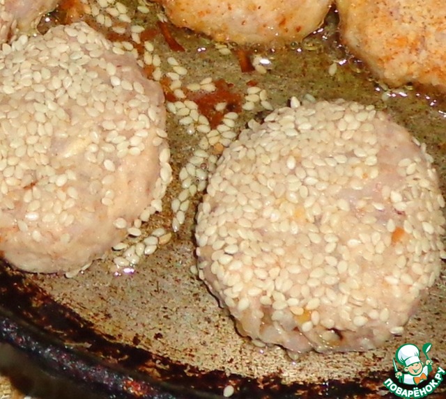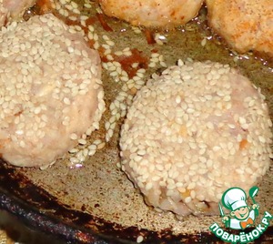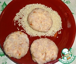 Сформировать биточки и обвалять в кунжутной панировке.