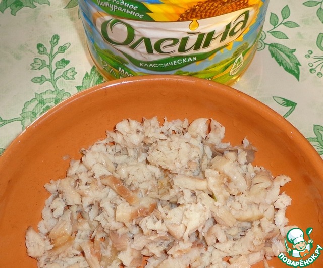 Отварное рыбное филе (можно взять сырое, но пропаривать дольше) размять.