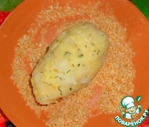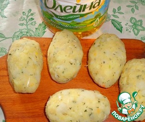 Из картофельной массы сделать лепешку, в середину положить рыбную начинку и сформировать зразы.