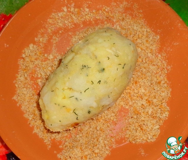 Обвалять в панировочных сухарях и обжарить на подсолнечном масле.