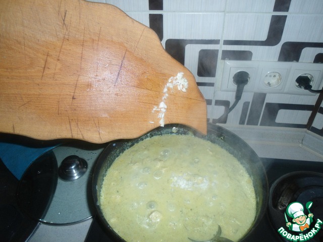 Вливаем молоко, пробуем по вкусу на соль и перец, накрываем крышкой и тушим на медленном огне еще 10 мин, периодически помешивая, так как соус с мукой может пригорать.