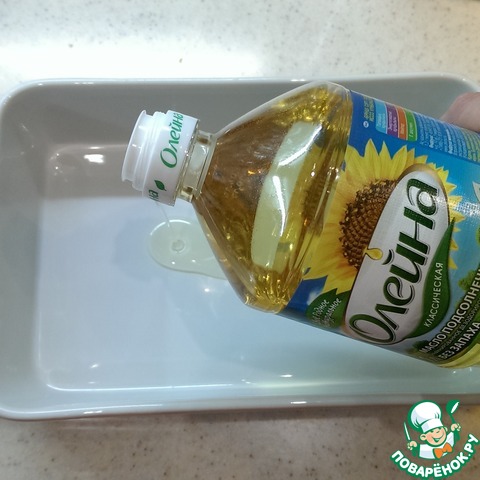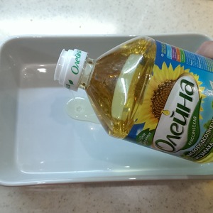 В форму для выпечки налейте пару столовых ложек подсолнечного масла.