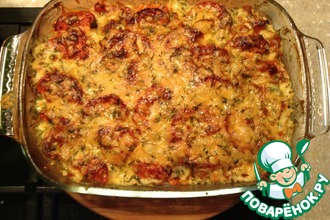 • Рис смешиваем с перцем, делим на две части. В одну часть добавляем колбаски, перемешиваем.