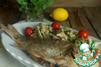 • Рыбу посолить, поперчить, посыпать смесью пряностей и сбрызнуть оливковым маслом. Ненадолго отставить.