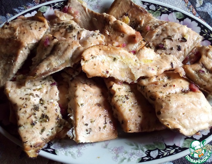Рыба приготовленная по этому рецепту получается необыкновенно мягкой, нежной, со свежим и ярким вкусом. Овощи и пряности превратят даже бюджетную горбушу в королевское блюдо.