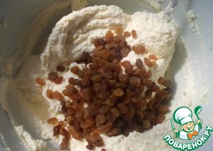 Изюм предварительно помыть и обсушить, можно настоять его на коньяке, если десерт для взрослых. Тоже добавить к общей массе.