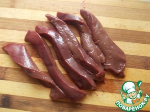 Займемся мясом и печенью. Я мариную с вечера, чтобы уже с утра не было хлопот ни с чем. Печень мы режем полосочками.