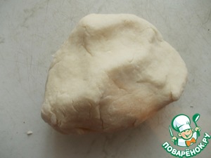 Затем добавить остальную муку с разрыхлителем и замесить тесто. Добавить сливочное масло и вмешать его также в тесто. Вот такое у нас получился, очень полсушное и с ним легко работать.