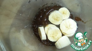 Надо взбить блендером варенье (у меня яблочное повидло) и банан.