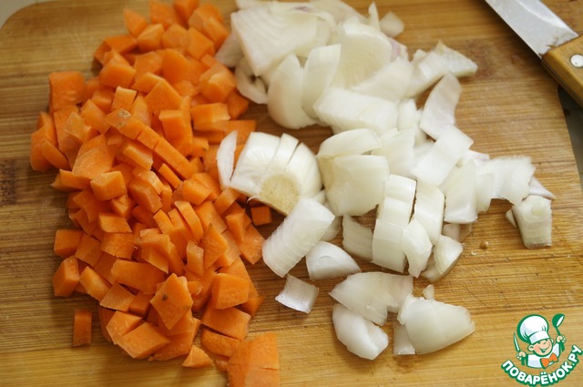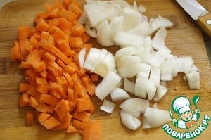 Морковь и лук очистить, промыть и нарезать кубиком.