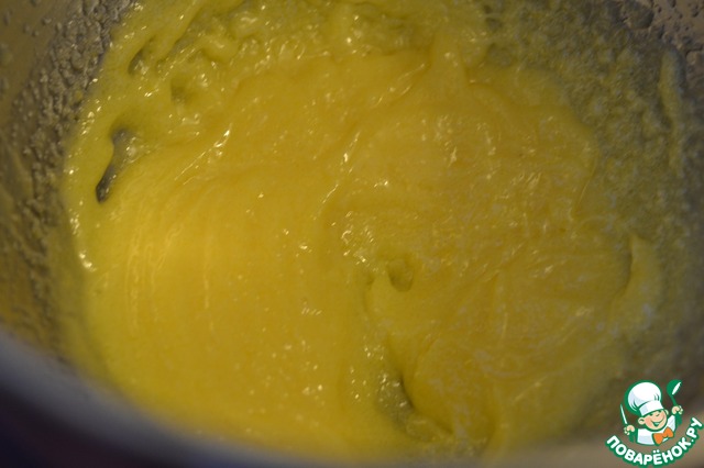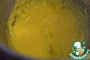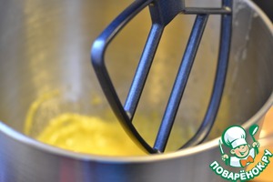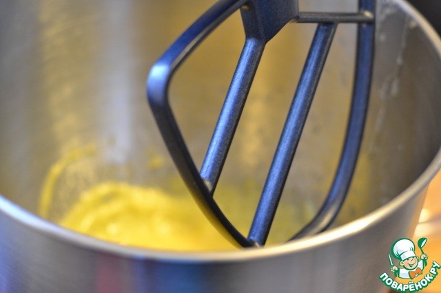 Мягкое масло, желтки и сахар взбить миксером в мягкую пену.