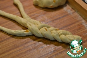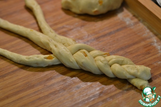 Смажем веночки взбитым вилкой желтком плюс 1ч. л. воды.